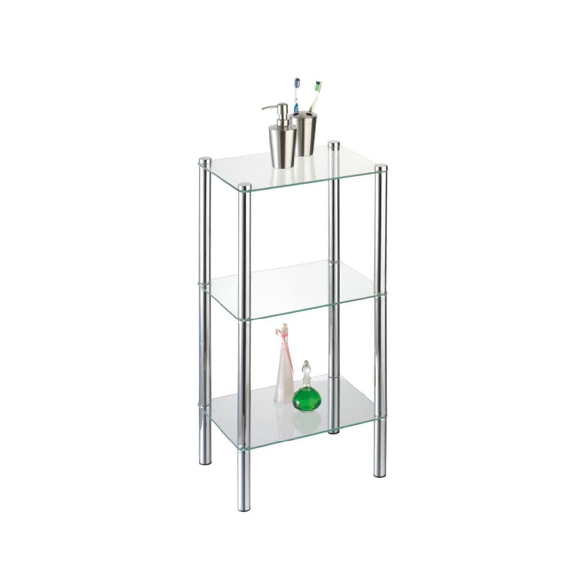 Стойка напольная Axentia "Solanio" высотой 77 см с 3-мя стеклянными полками. Изготовлена из хромированной стали, с высокой защитой от коррозии. Удобная и вместительная, сэкономит место в ванной комнате, так же подойдет для универсального домашнего использования. Простая сборка, инструкция в комплекте.