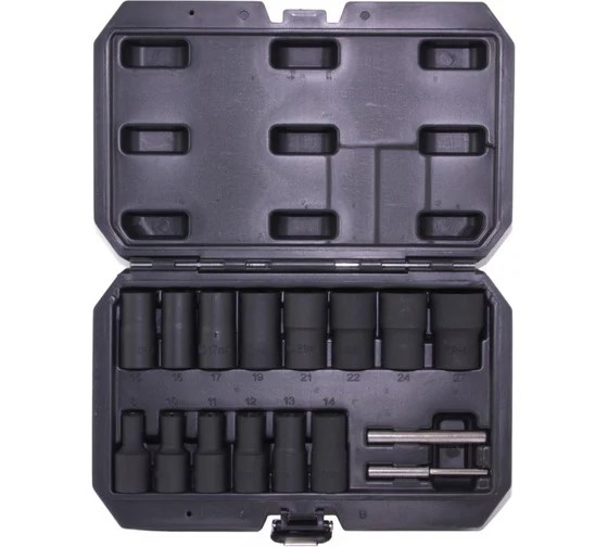 Набор головок торцевых спиральных для поврежденного крепежа 1/2"DR, 8-27 мм, 16 предметов Thorvik /