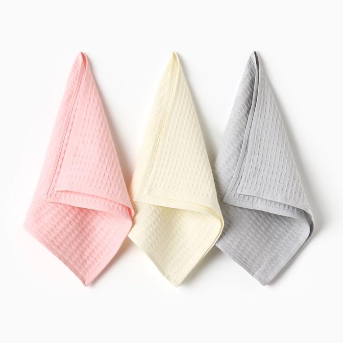 Набор кухонное полотенец "Доляна" розовый, серый, белый, 35х60см-3шт., 100% хл, вафля, 220 гр/м2 /