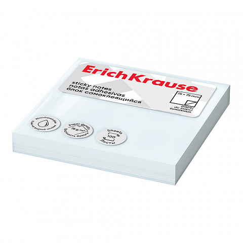 Блок самоклеящийся бумажный ErichKrause 75х75 мм, 100 листов, белый /