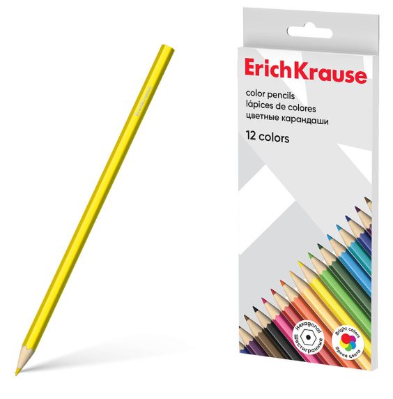 Цветные карандаши деревянные ErichKrause шестигранные 12 цветов (в коробке с европодвесом 12 шт) /