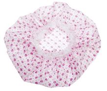 Шапочка DEWAL Beauty для душа с кружевом, белая с розовыми цветами /