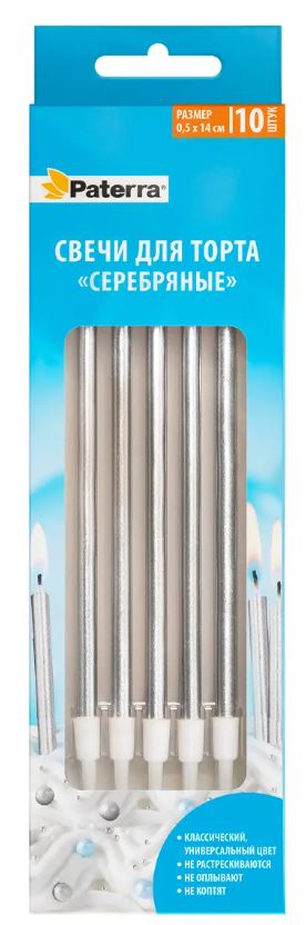 Свечи для торта "Серебряные"10 шт PATERRA /