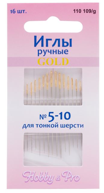 Иглы ручные для вышивания и шитья с золотым ушком № 5-10, 16шт, Hobby&Pro /
