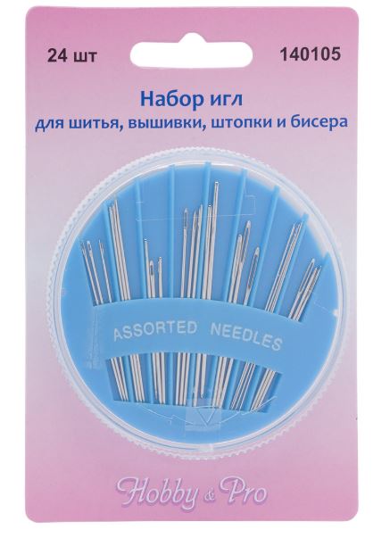 Набор ручных игл для шитья, вышивки, штопки и бисера в распределит. пенале, 24шт, Hobby&Pro /