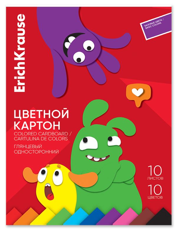 Цветной картон глянцевый на клею ErichKrause, Jolly Friends, А4, 10 листов, 10 цветов /