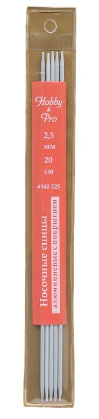 Спицы носочные алюминиевые с покрытием 20см, 2,5мм Hobby&Pro /
