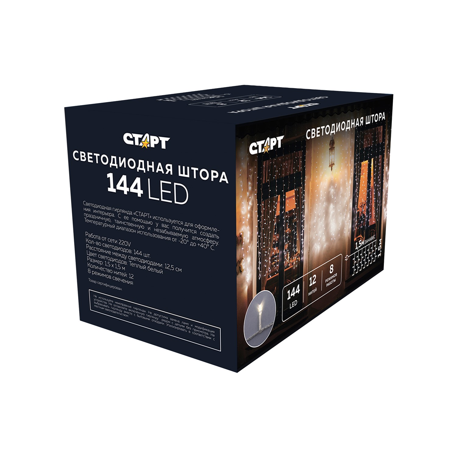 Гирлянда СТАРТ Занавес 144LED 12 нитей 8 режимов 1,5х1,5м 220V теплый свет /