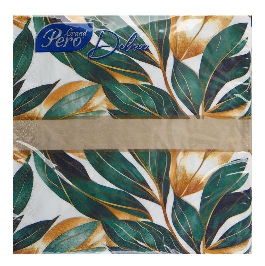Салфетки бумажные 20шт PERO DELUXE 3 слоя малахит /