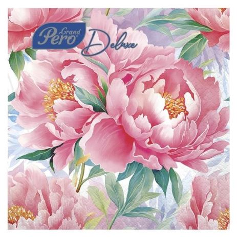 Салфетки бумажные 20шт PERO DELUXE 3 слоя розовый туман /