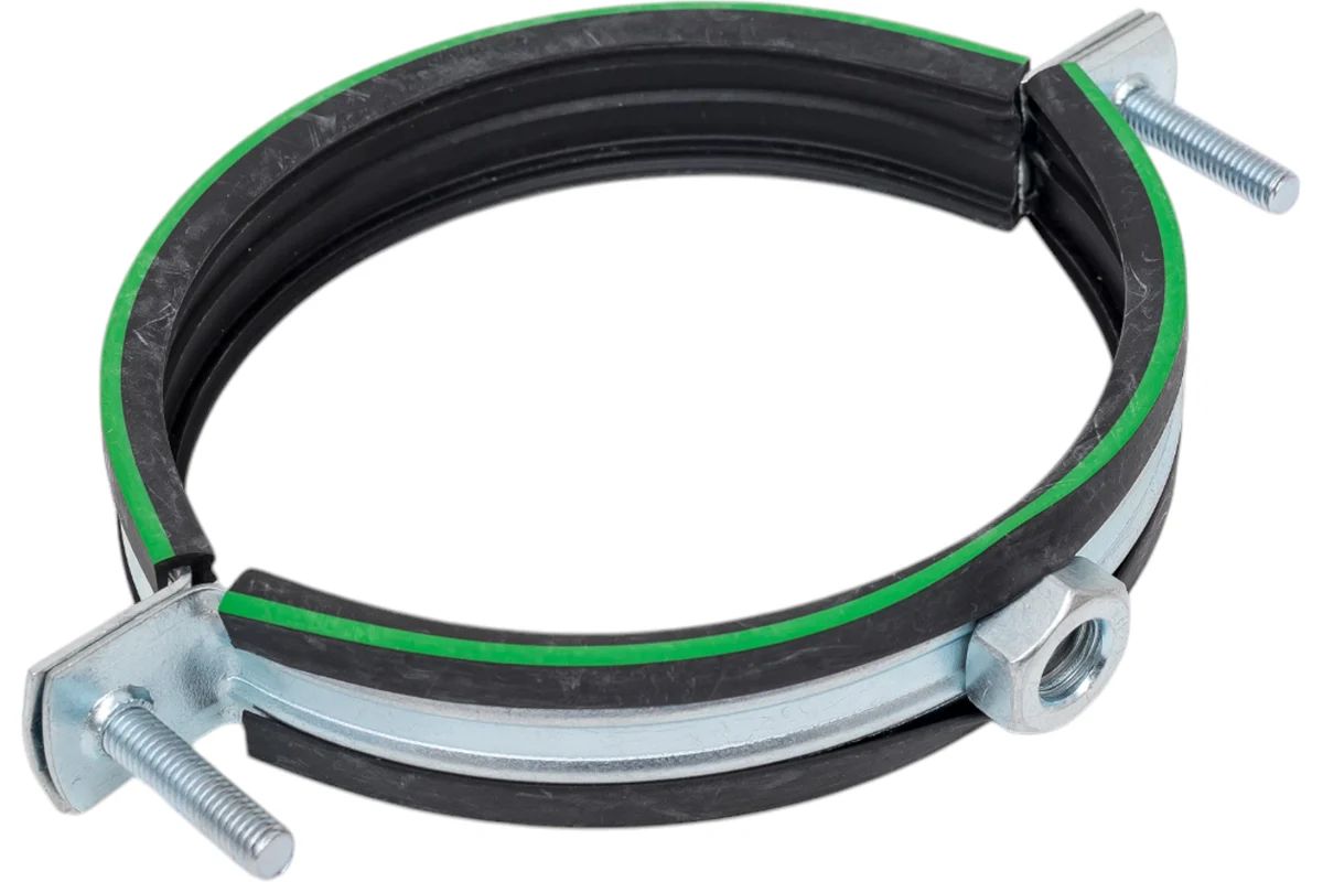 Хомут сантехнический Mayer д/труб Ф150 (149-161мм) гайка М10 и уплотн. с зел.полосой /