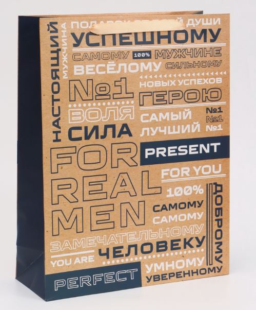 Пакет подарочный вертикальный «Настоящий мужчина», 31×40×14 см /