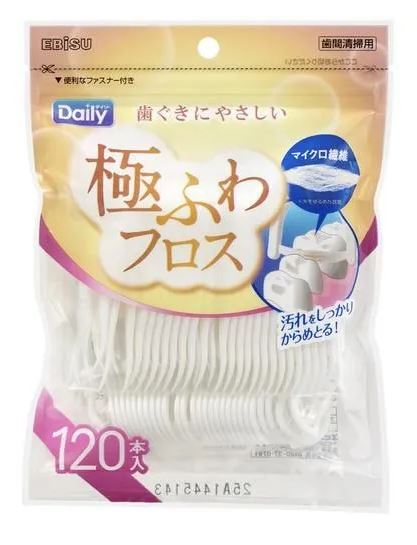 Флосспик EBISU с тонкой распушенной зубной нитью на компактной плоской ручке 60шт /